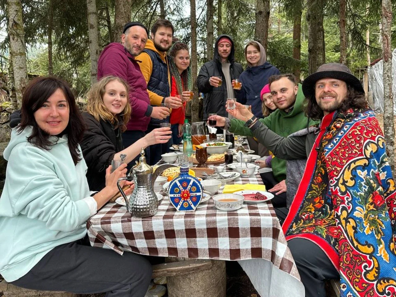 Минуем несколько заброшенных поселений и окажемся в гостях у местных жителей в маленькой уютной таверне, где нас радушно встретят, напоят горячим чаем и испекут свежие хачапури. Желающие смогут присоединиться к хозяйке и сами себе сделать выпечку, чтобы проникнуться бытом этих мест.
