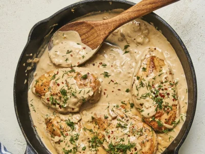 - куриное фрикасе в сливочном соусе с горгонзолой и малиной